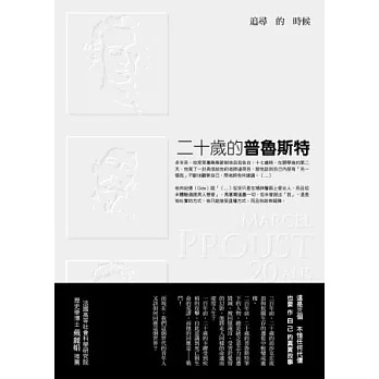 網路上搜尋有看到 二十歲的普魯斯特:追尋的時候 評價感覺不錯!